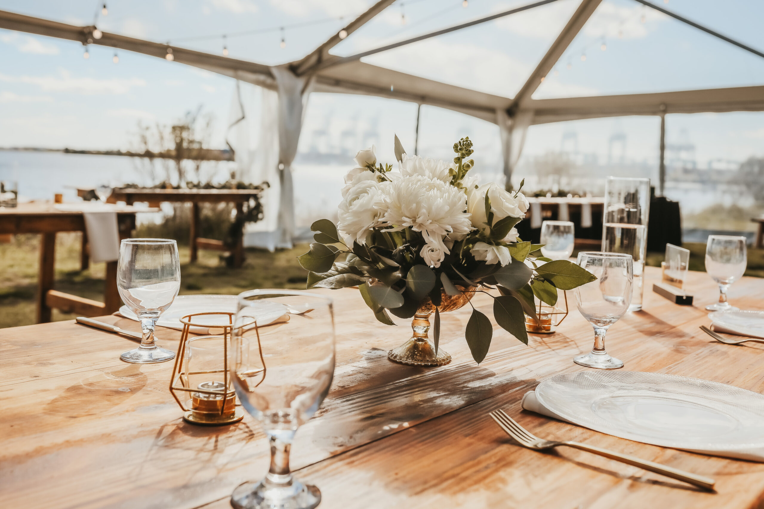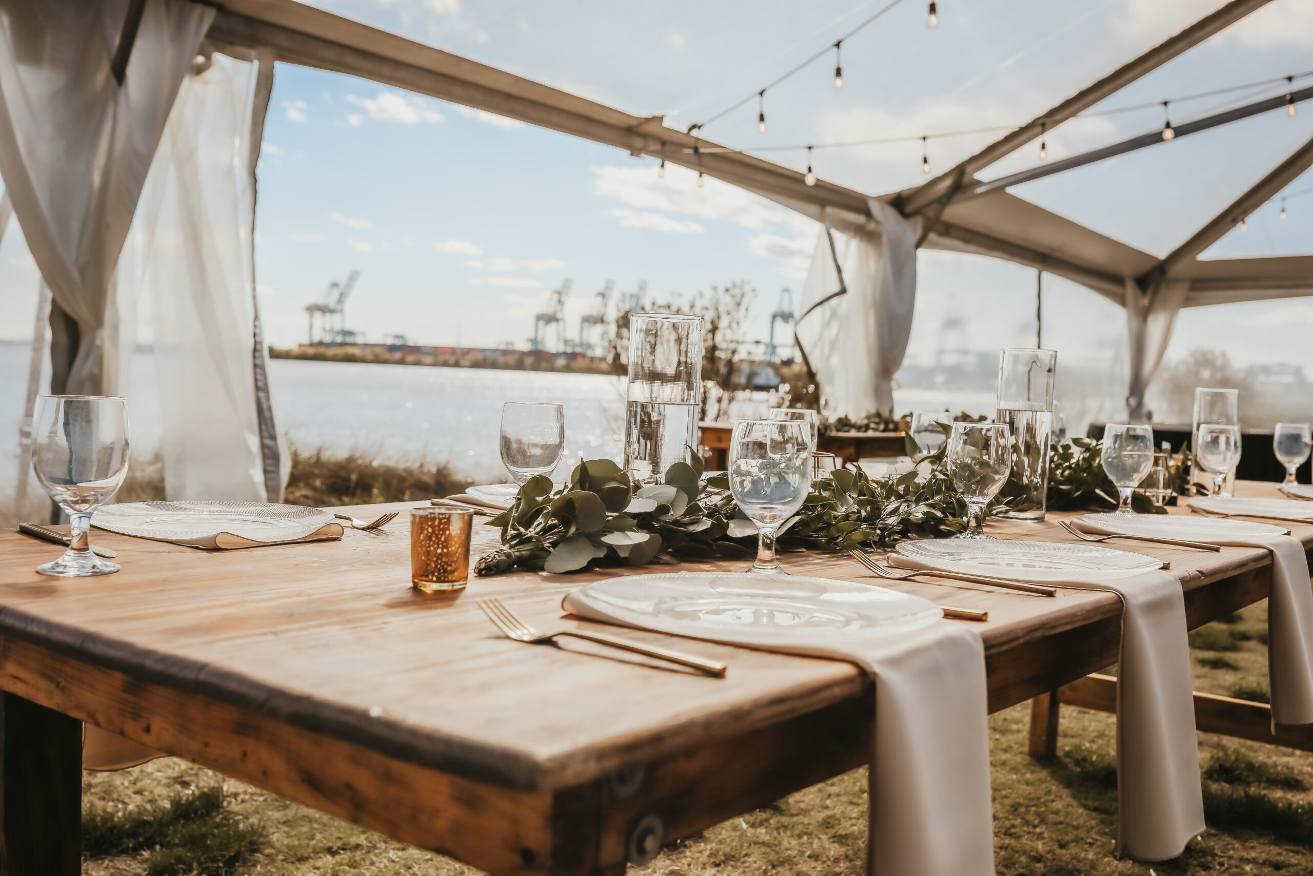 For this celebration, the couple embraced a classic, earthy design style that blended seamlessly with the surroundings—lush greenery, ivory florals, and rustic wood details that felt elegant, organic, and perfectly suited to a Coastal VA wedding at the Hermitage Museum.