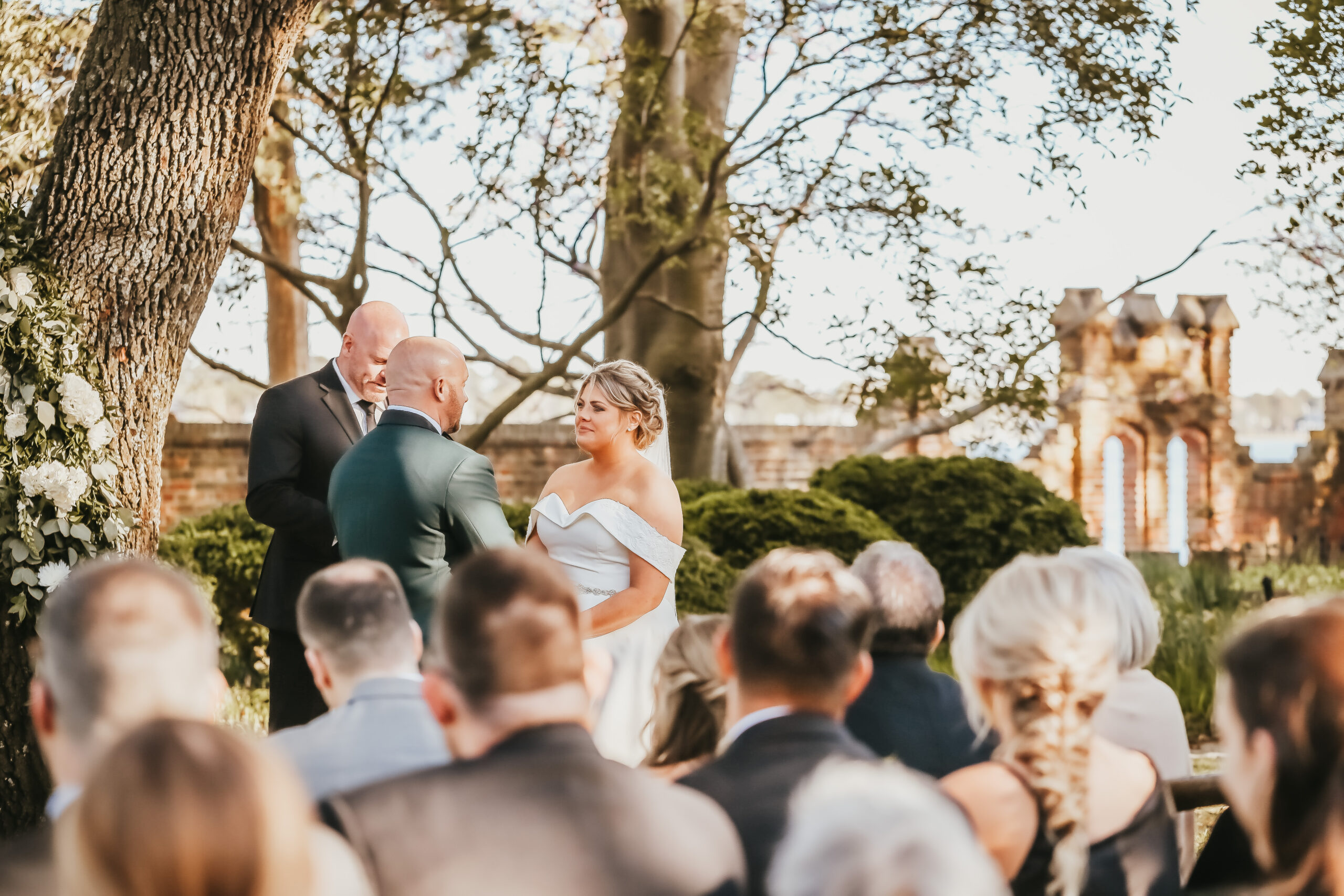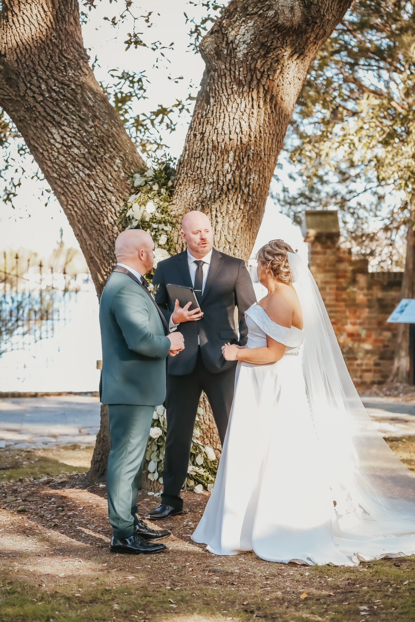 Nestled along the Lafayette River, the Hermitage Museum & Gardens offers some of the most picturesque grounds in Norfolk wedding venues. For this Hampton Roads wedding day, guests were welcomed into a setting that felt warm, intimate, and deeply serene. Surrounded by towering trees, ivy-covered brick, and waterfront paths, the ceremony embraced the natural beauty of the property.