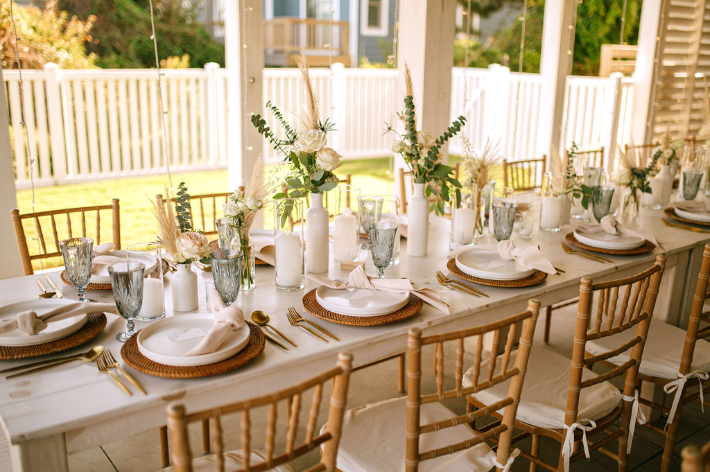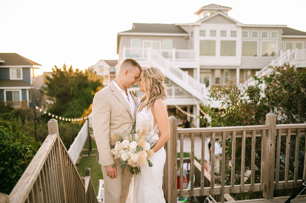 There’s something effortlessly romantic about an event home wedding in the Outer Banks — where the ocean breeze, dune grass, and golden light set the scene for an unforgettable coastal celebration. It’s like a comfortable backyard wedding, but elevated! For this Corolla wedding, the couple embraced the natural beauty of the shoreline, designing a day that felt both organic and refined.