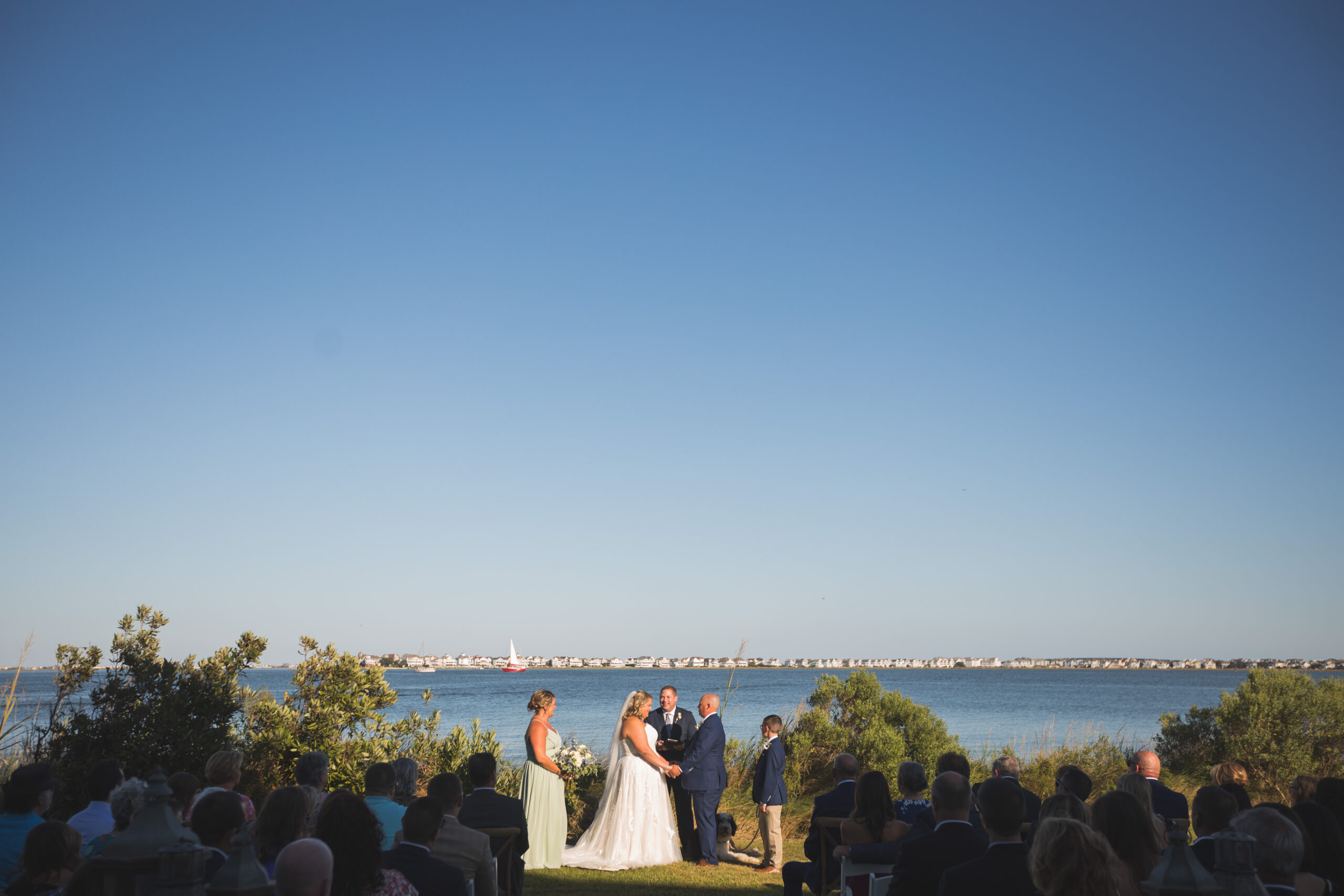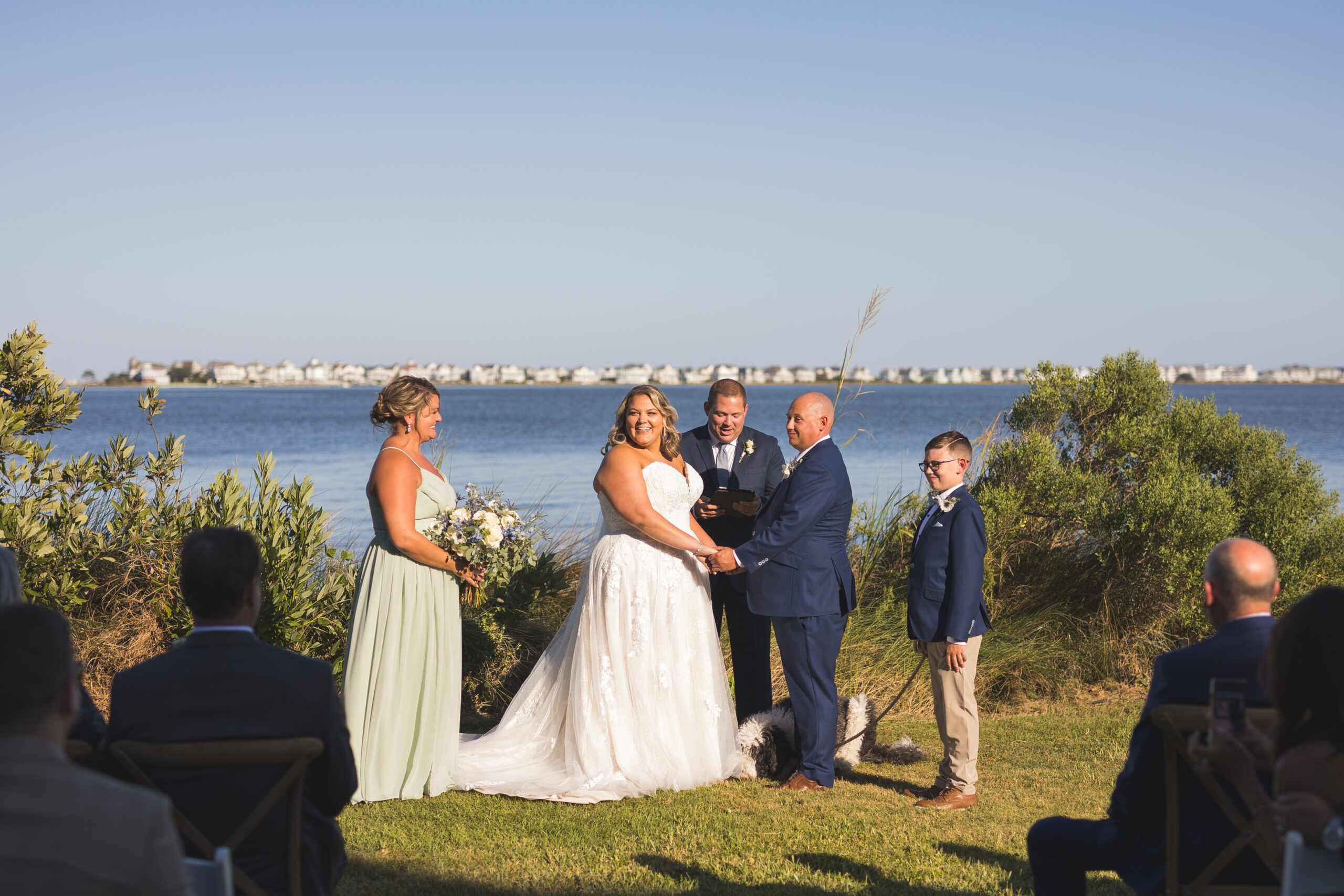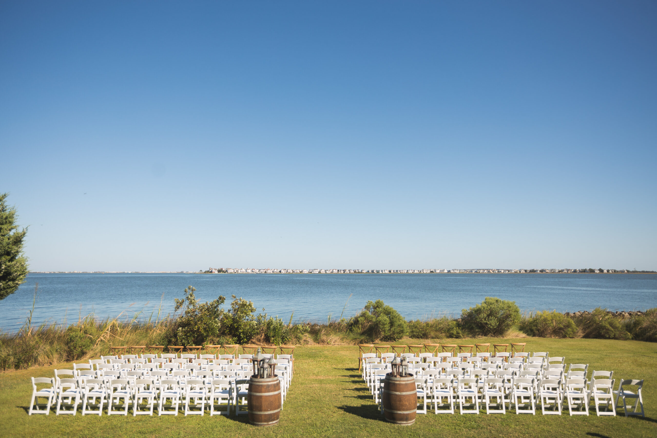 For Jenn & Chris, this venue checked every box: a soundfront backdrop for their vows, the timeless cedar shake look that defines coastal architecture, and wide open lawns for hosting an elegant reception.