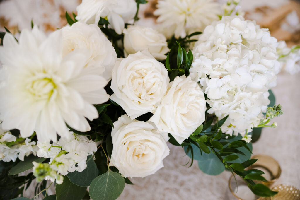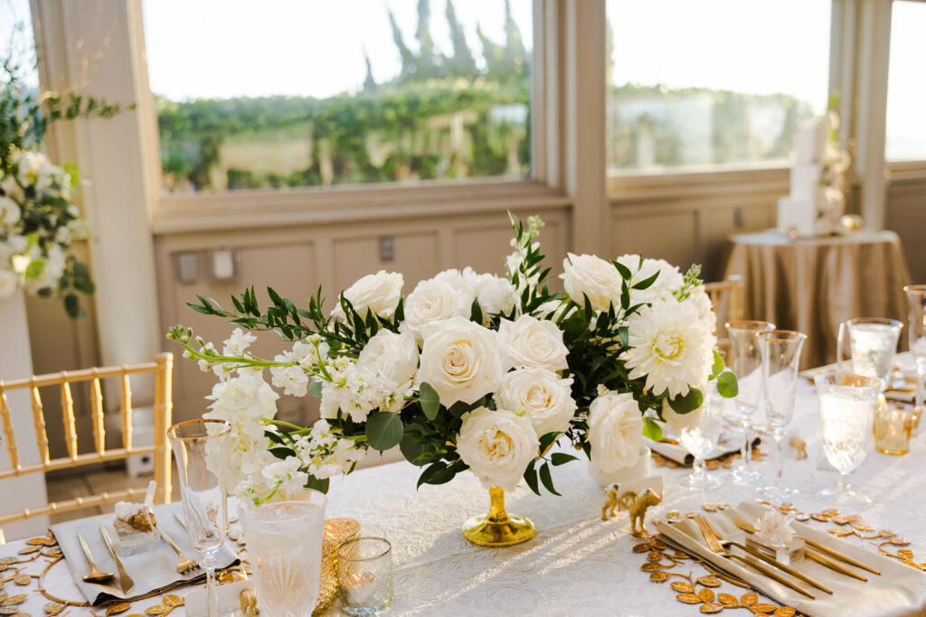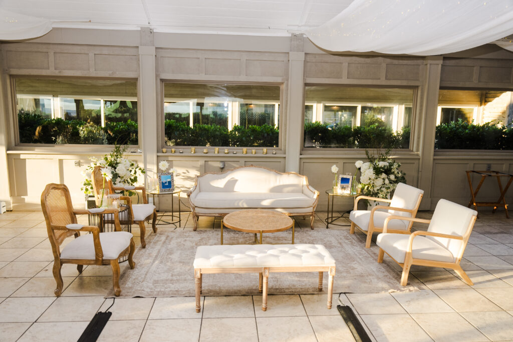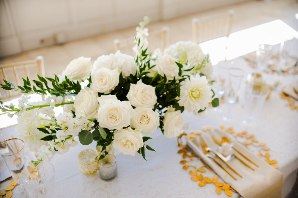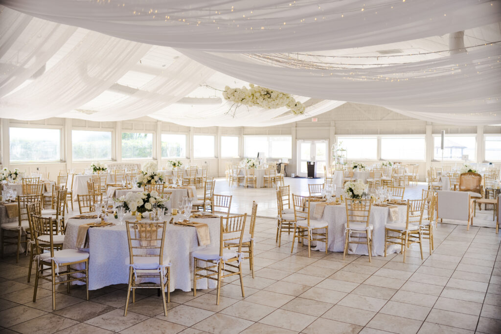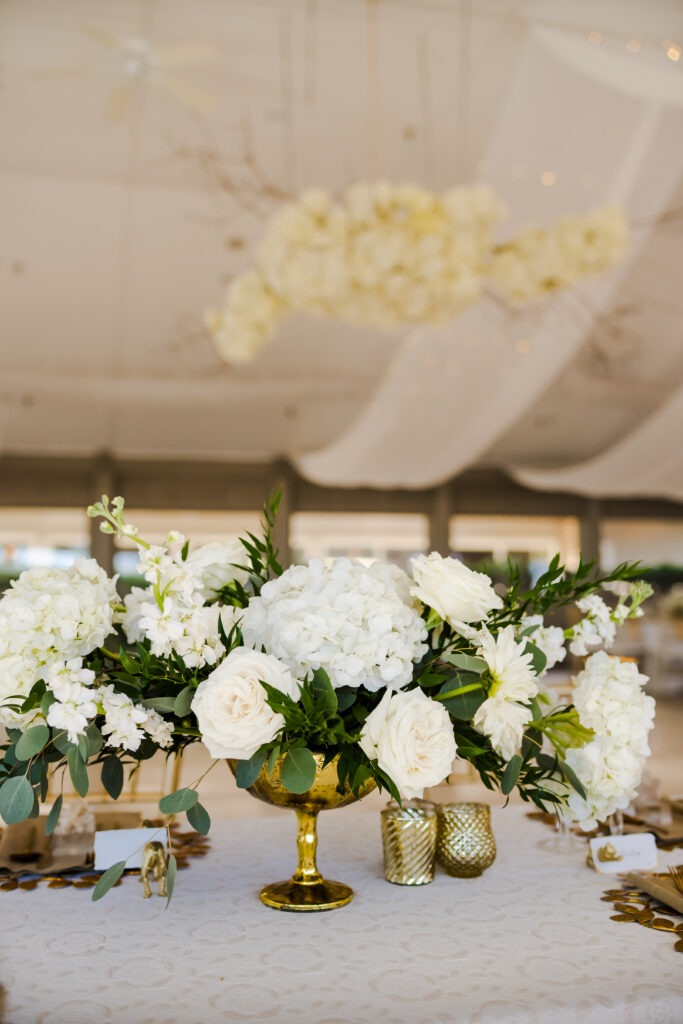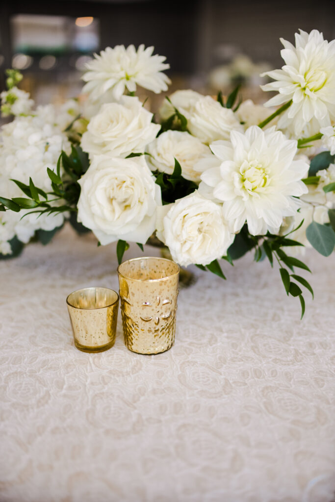 The design centered on a classic but elevated white and gold palette, layered with rich texture to create depth, warmth, and understated glamour. Soft linens, metallic accents, and refined finishes came together in a way that felt modern yet timeless — a perfect reflection of high-end coastal wedding style.