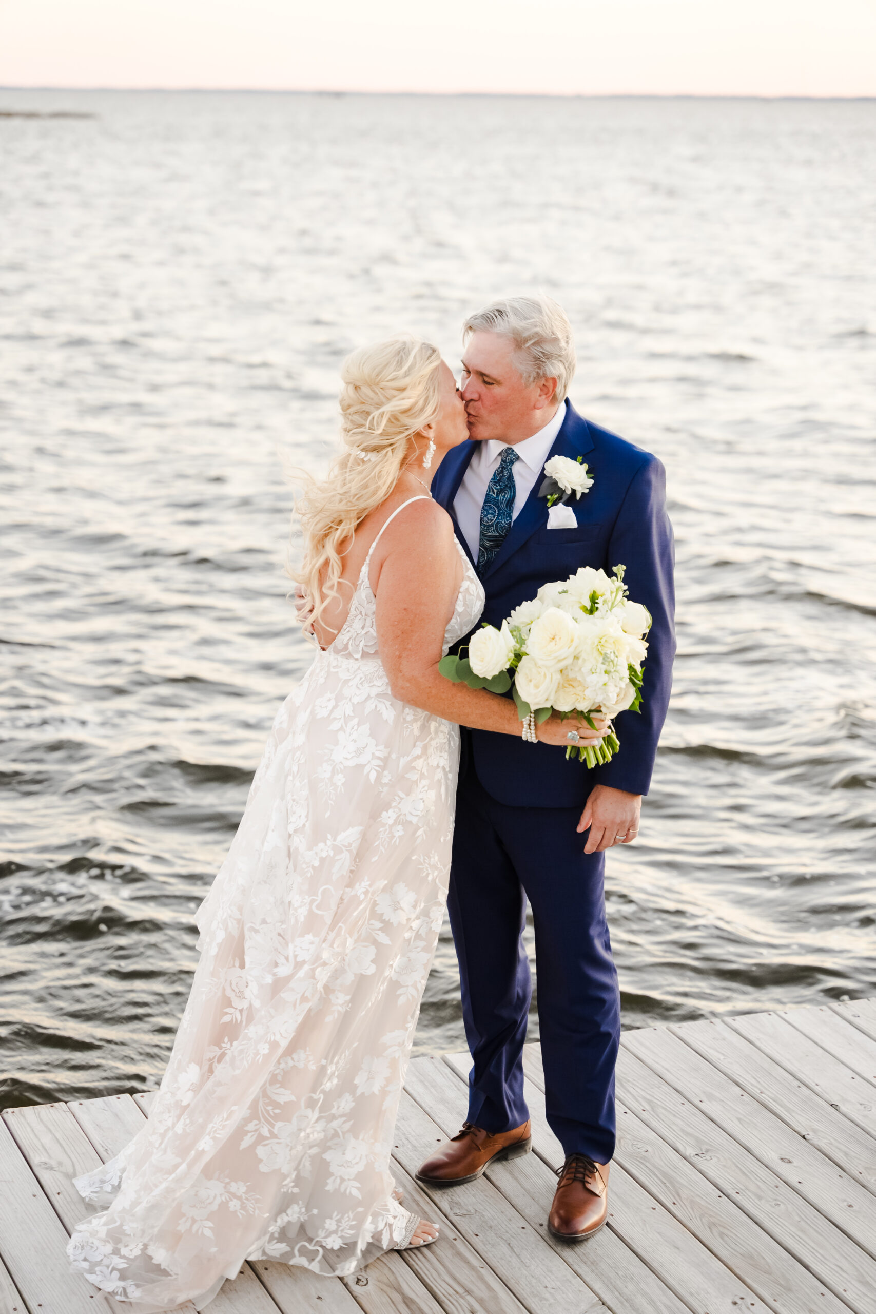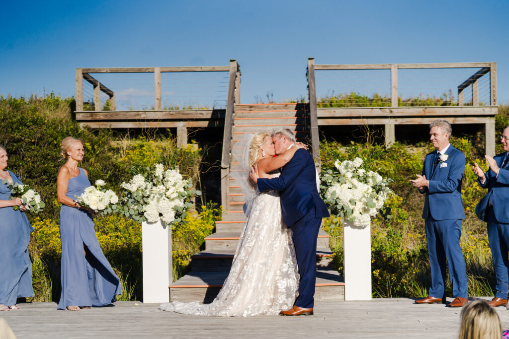 A Sanderling Resort wedding is synonymous with refined coastal luxury, and this celebration perfectly embodied what makes the venue one of the most sought-after locations for a high-end Outer Banks wedding. Set in Duck, NC, this coastal wedding blended timeless design with elevated textures, breathtaking views of the sound, and a sunset that felt nothing short of cinematic.