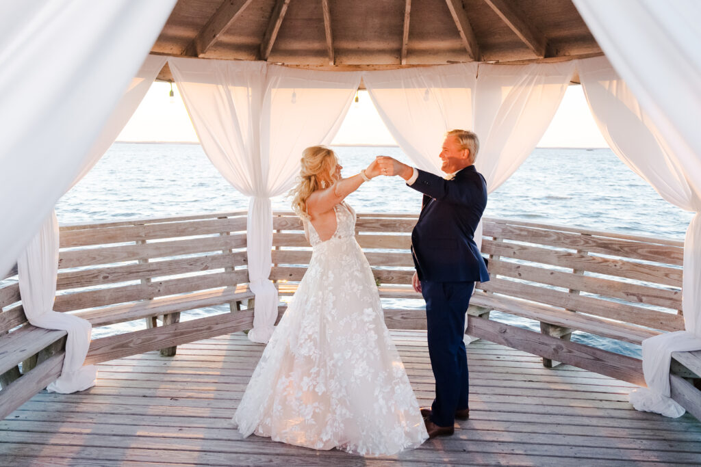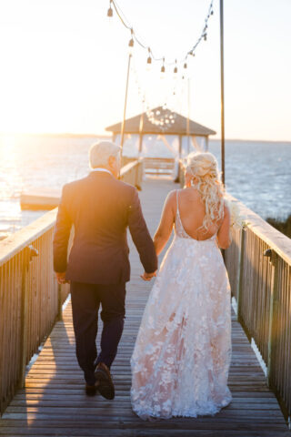 As guests moved through the evening, the Duck sunset over the sound took center stage. The golden light reflecting off the water set the tone for a warm, romantic celebration and served as a reminder of why Sanderling weddings are so iconic. Few venues capture the magic of an Outer Banks coastal wedding quite like this.