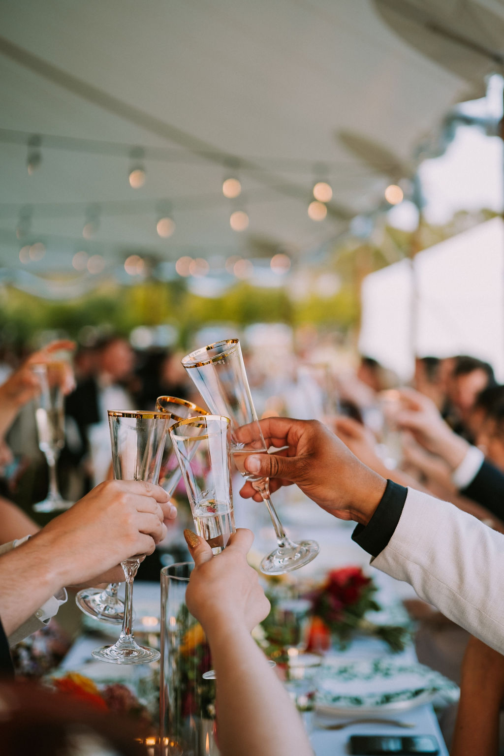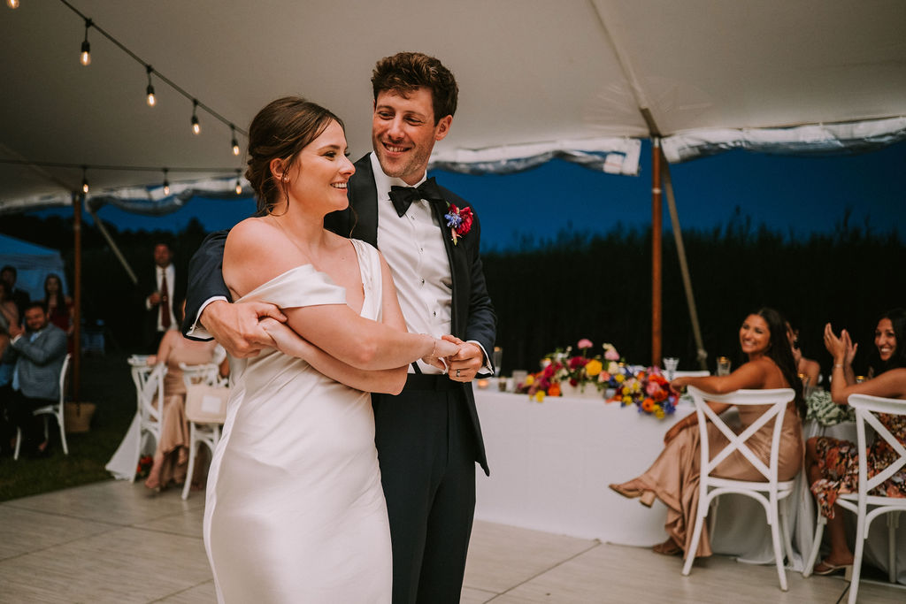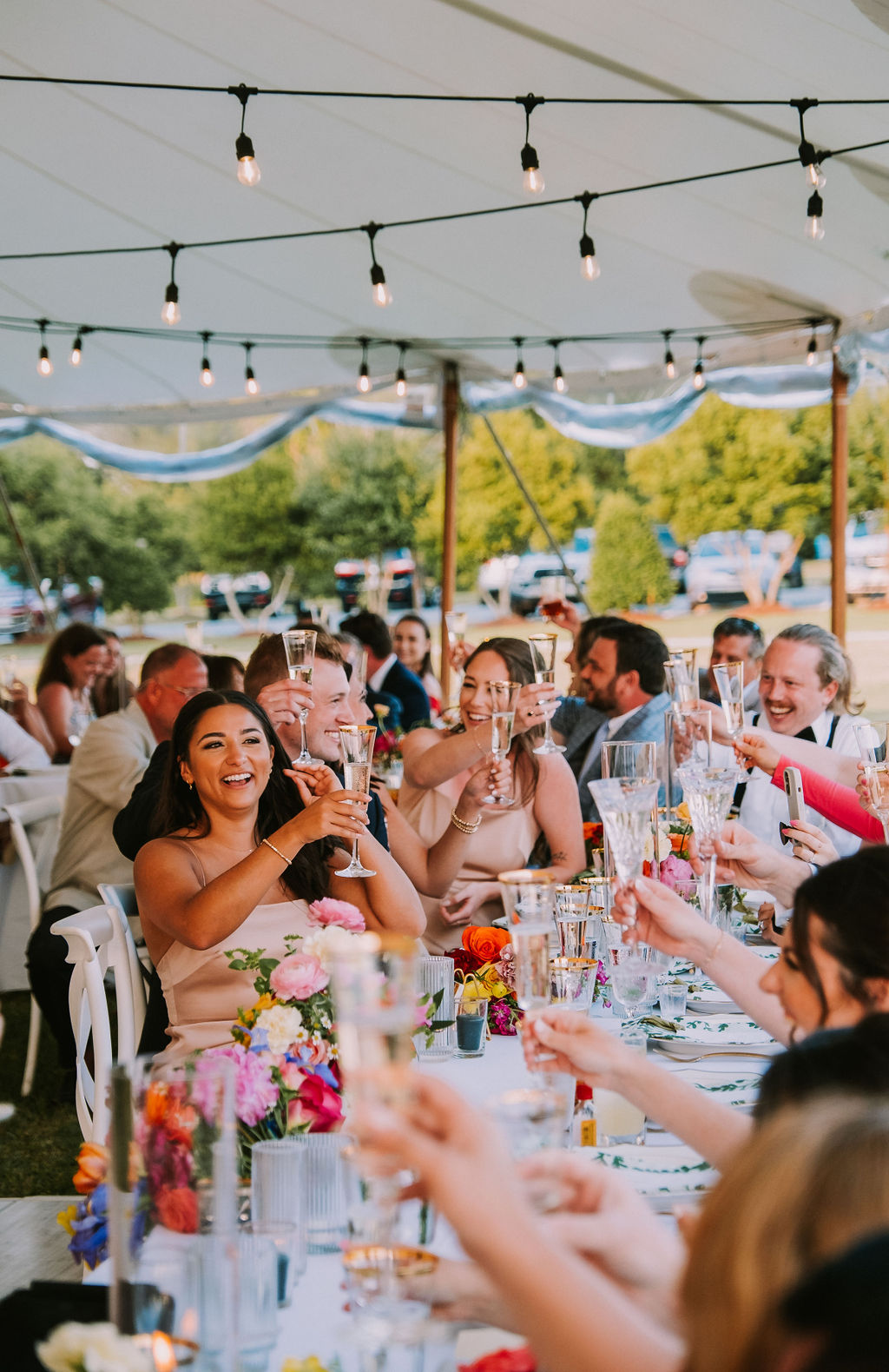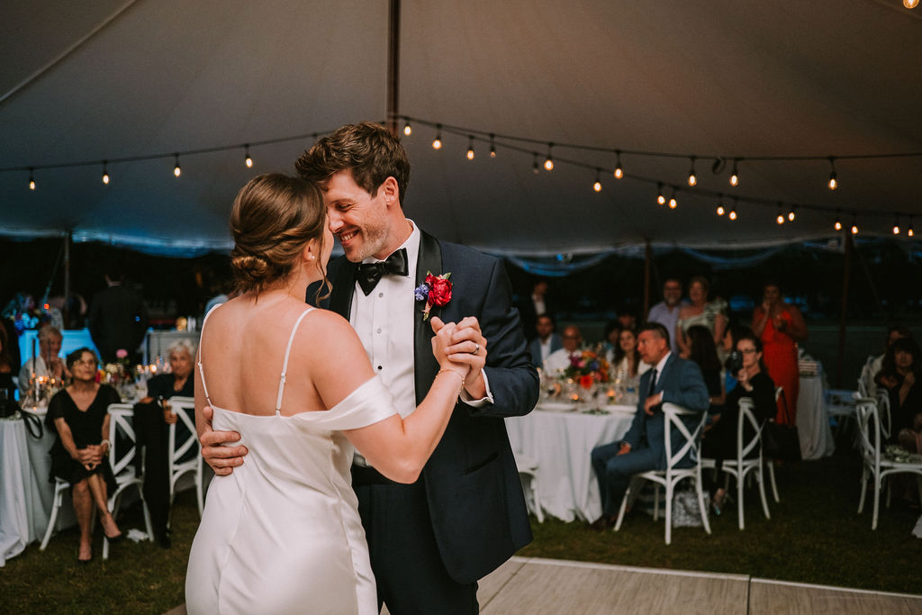Guests enjoyed cocktail hour overlooking the Currituck Sound, followed by dinner and dancing beneath a stunning sailcloth tent that glowed as the sun set. Every detail was crafted to balance elegance with fun, creating a celebration that was as joyful as it was beautiful.