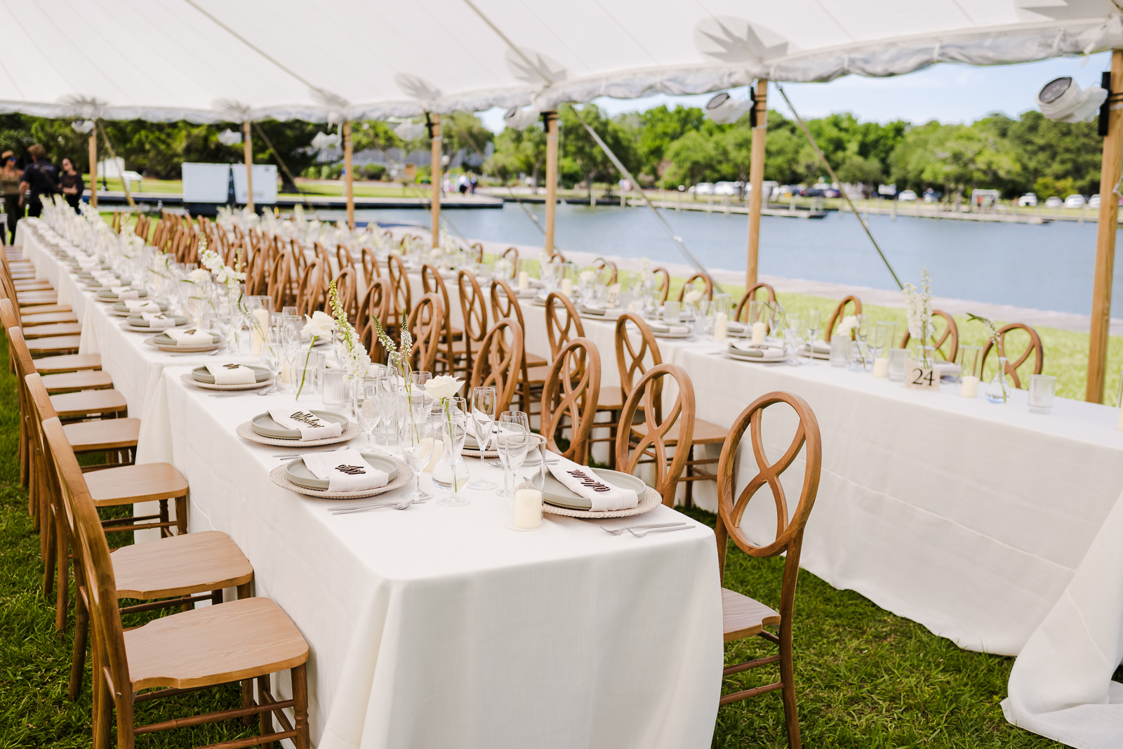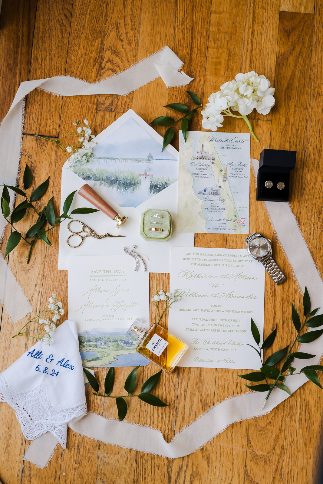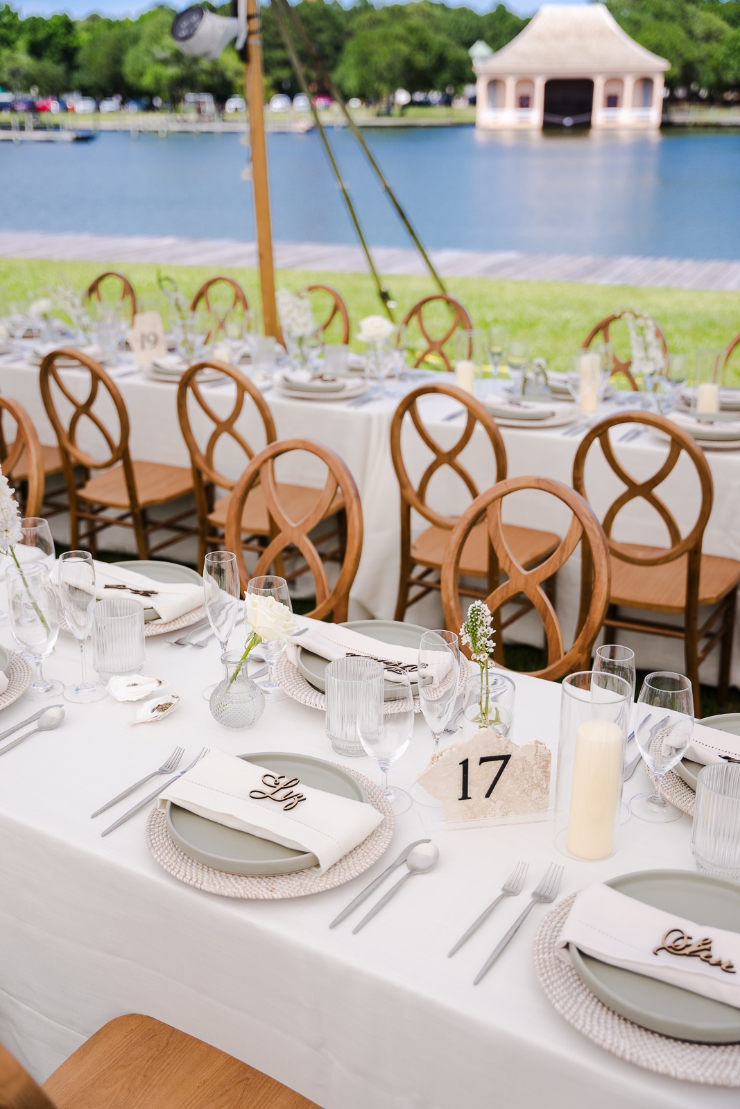 There’s a reason so many couples fall in love with the Whalehead Club in Corolla, NC — it’s one of the most breathtaking venues for an Outer Banks wedding, with its sweeping Currituck Sound views and timeless coastal charm. For this celebration, the design focused on a neutral, refined palette that let the setting shine, creating a wedding that felt effortlessly sophisticated and deeply serene.