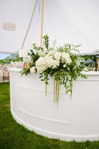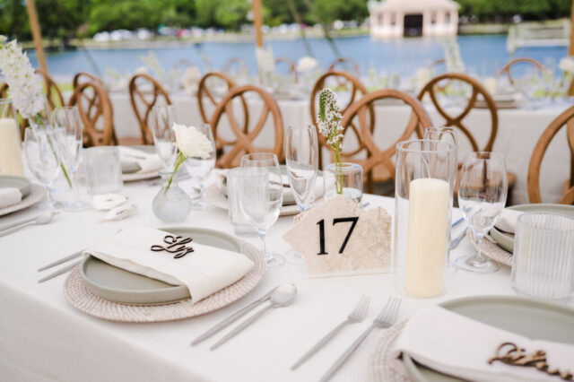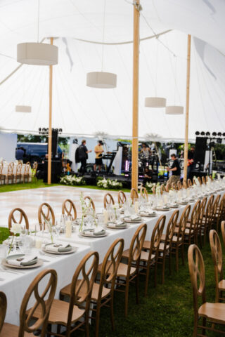 Every detail of this Corolla wedding was chosen with intention. Linen drum shades added a touch of understated luxury overhead, while the 360-degree round bar became a focal point for conversation and celebration throughout the evening. Together, these thoughtful elements created a design that felt inviting, balanced, and beautifully coastal.